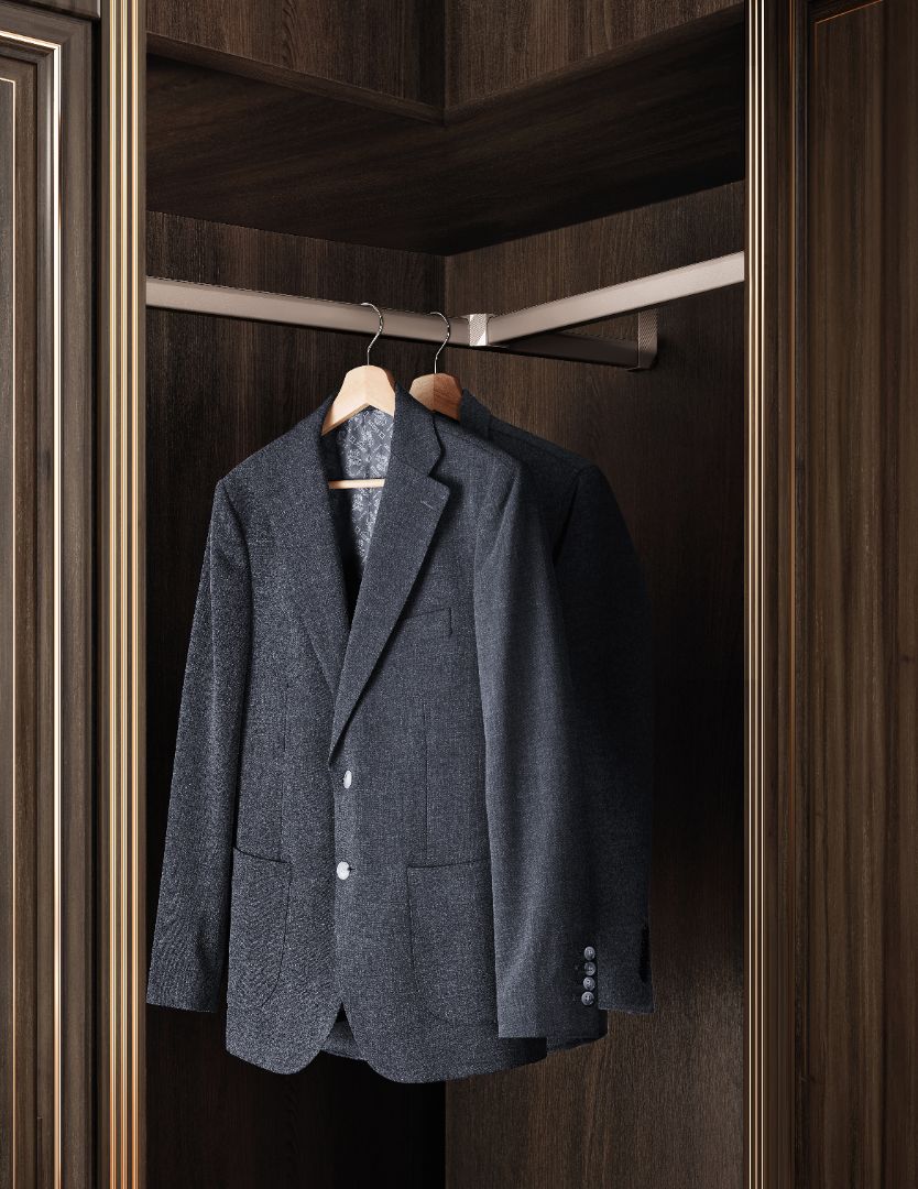 - Component used in wardrobes or closets to help organize garments.